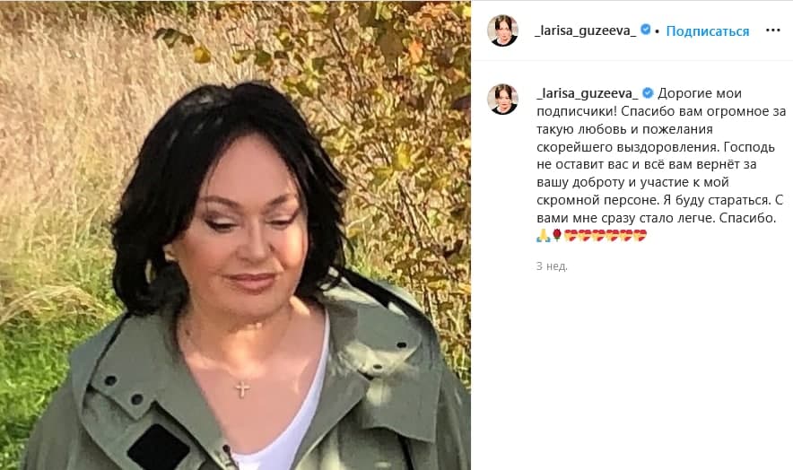 Об этом стало известно из публикаций Ларисы Гузеевой в ее "Инстаграм".