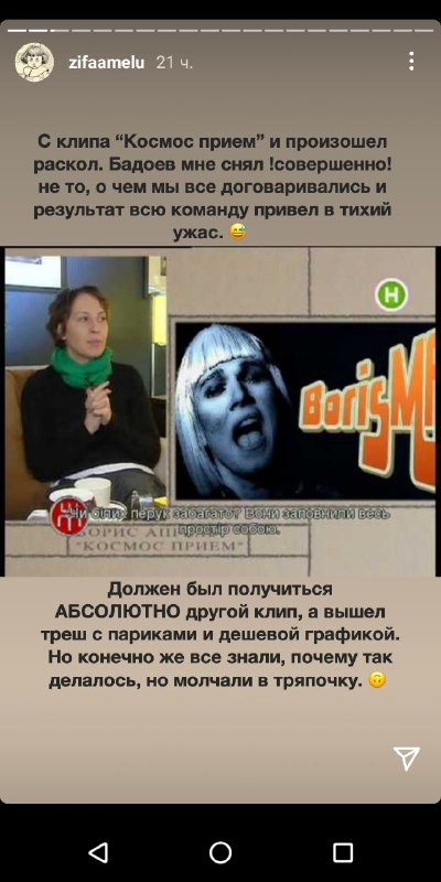 По словам экс-Бориса Апреля, он был угрозой и конкурентом для Бадоева, Барских, Ясинской и их "коршунской стаи", именно поэтому Алан Бадоев на песню Апреля "Космос прием" снял абсолютно непутевый клип с дешевой графикой, хотя изначально задумка была совершенно другой.