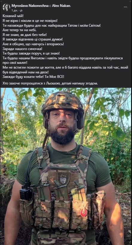 О трагедии стало известно из публикации его супруги в соцсети. Мирослава Наконечная трогательно простилась с мужем, написав: