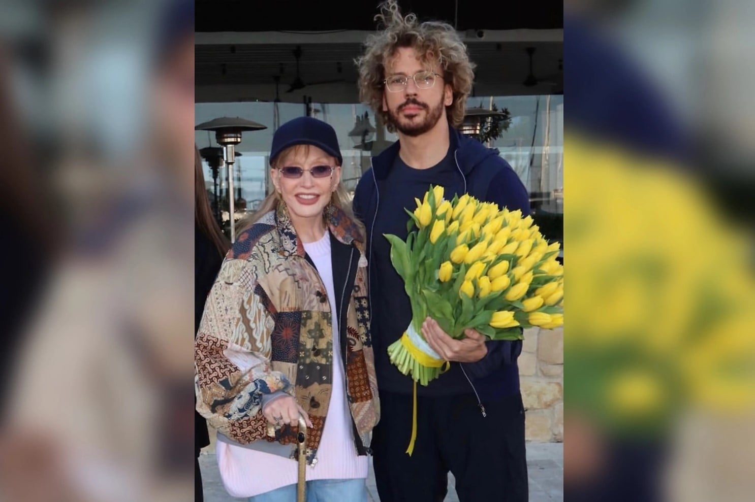 Что касается Галкина, то он на фото запечатлен с большим букетом желтых тюльпанов.